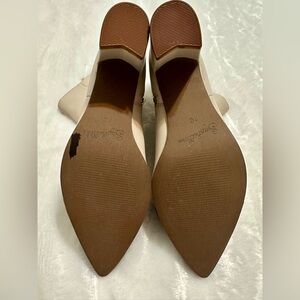 These two-tone beauties have a genuine leather construction that features a pointed-toe upper, ankle high shaft, and a sturdy contoured heel. 5.5" zipper at instep.