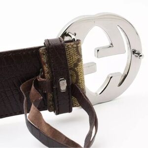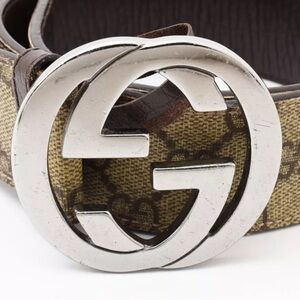 Authentic GUCCI Belt GG Supreme Interlocking Buckle Beige Brown Silver