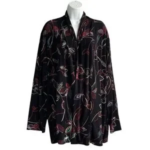 VIKKI VI Floral Slinky Cardigan Plus Size 2X Open Front Oversized Long Sleeve