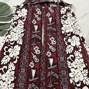 Rainbow Hawaii women's vintage y2k red and white tropical floral mini dress, size L. It is free from any rips or stains. It measures about 39 inches around the waist, about 36 inches around the waist and is about 32 inches long.