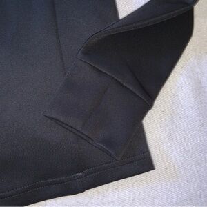 Thumb holes at wrist and 2 side pockets. This is a wonderful jacket to wear for clinics, lessons, or hot weather shows. Classy clean lines. Full zip. High neck collar.