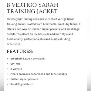 B VERTIGO SARA TRAINING JACKET black XL new with tags dressage equestrian pretty