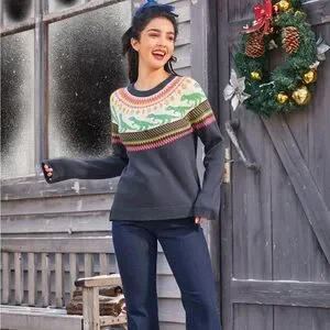Modcloth Retro Charm Raglan Dinosaur Fair Isle Sweater