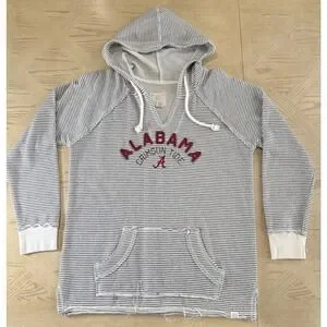 Blue 84 Alabama Crimson Tide Striped Hoodie Pullover V Neck Pocket Women's L