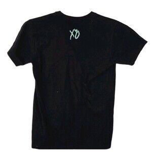 The product is a black T-shirt featuring The Weeknd's Starboy World Tour Phase Two. This pullover shirt has a crew neck and short sleeves, made of cotton. It is designed for regular fit and is suitable for machine wash. The shirt is branded as XO and has a solid pattern with a pop character, perfect for fall season and music-themed style. Ideal for women who are fans of The Weeknd and want to represent his tour in a stylish and comfortable way.