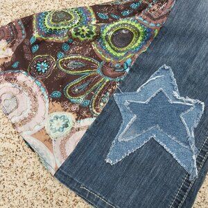 3789 Size 16 Upcycled Maurices Bleach Dyed Bell-Bottom Jeans. Waist 19" inseam 32" rise 10".
