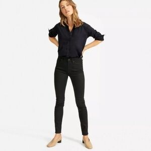 New with tags Everlane Black Mid Rise Skinny Jeans 24. These jeans feature a black onyx denim fabric with minimal stretch with a comfortable mid-rise fit, classic 5 pocket design, and a zip to button closure.