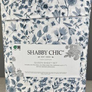 Shabby Chic Queen Sheet Set Floral Blue and White 100% Cotton 4 pc New in Pkg.
