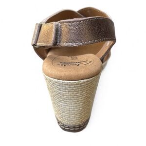 Women’s Clarks Helio Coral Wedge Sandals Silver Metallic Leather 6 Wide – NWOT