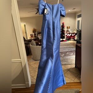 Step into elegance with this stunning blue evening gown. Perfect for any formal occasion, this dress offers a sleek and sophisticated look.