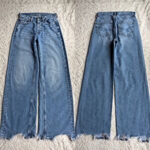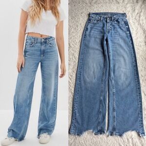 American Eagle Super High Rise Baggy Wide Leg Jeans Light Distressed raw hem0