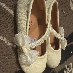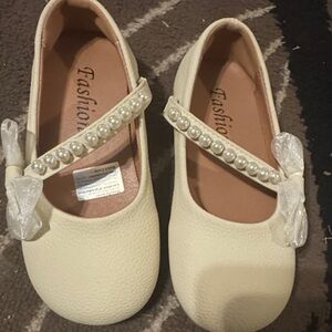 SHEIN Cream Pearl Bow Kids Dress Shoes