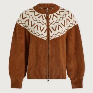 Varley Alys Fair Isle Knit Jacket in Roasted Pecan(chestnut brown/cream white), size M. Excellent pre-owned condition.