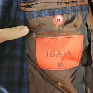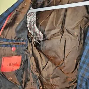 Isaia Blue Check Wool Sport Coat 44R (Eu 54)