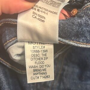Stylish dark blue jeans by MOTHER. Features classic back pocket design. Perfect for everyday wear. About 16” on the waste and 27” inseam.