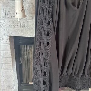 Chic Elie blouse with crochet sleeves. Perfect for versatile styling. Like new. Size L