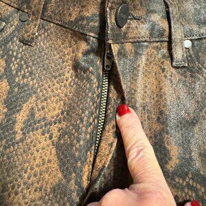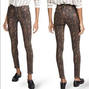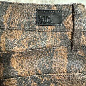 PAIGE Hoxton Ultra Skinny Coated Brown Snake Print Jeans Sz. 27
