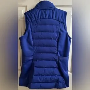 Why not treat yourself to this LULULEMON DOWN FOR IT ALL VEST in an AMETHYST BLUE colorway that Lululemon calls PSYCHIC BLUE in a sz 10. Fabulous and versatile super lightweight 700-Fill Goose Down /Primaloft vest in wind-and-water resistant GLYDE with six (6) pockets - (2) zipper, (2) deep interior pockets for your phone, and (2) open side pockets - for stashing keys, gloves, phone, etc. Perfect for RUNNING and layering. OUTSTANDING, preowned condition!
