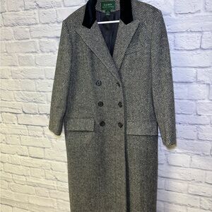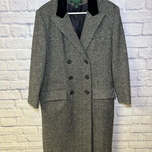 Lauren Ralph Lauren Double Breasted Wool Herringbone Coat Womens 12 Vintage USA
