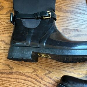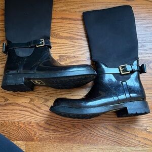 Tall Kate spade rain boots - rubber base and nylon upper.