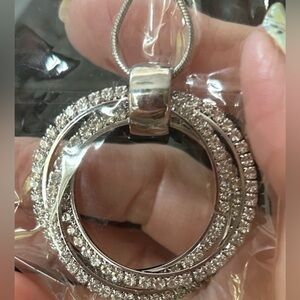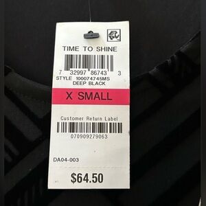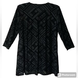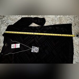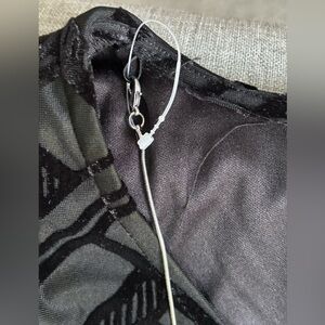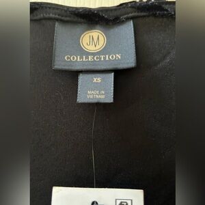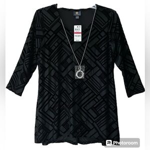 NWT JM Collection Black Velvet Flocked Jacquard Top Blouse with attached Silver Rhinestone Necklace in Size XS.