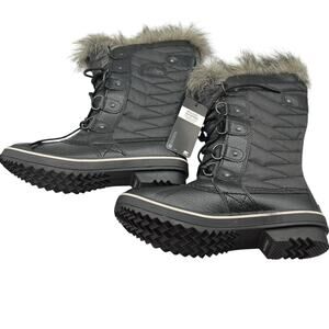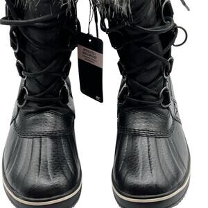 Sorel Womens Size 6.5 Tofino II Waterproof Faux Fur Trim Boots Black Stone NWT