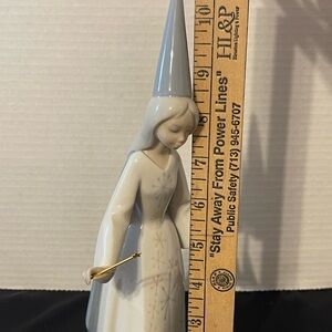 Elegant Lladro figurine with a pointed hat. Features intricate snowflake patterns. This piece was given to Diamond members on Royal Caribbean back in the 1990’s. Belonged to my mother. Comes from a smoke free home.