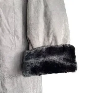 Features a soft suede-look outer shell and a plush faux fur lining and trim.