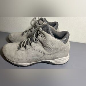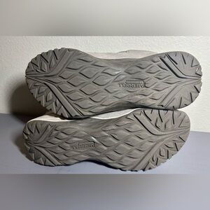 Experience comfort with Merrell's gray athletic shoes. Ideal for active lifestyles. Some wear on the suede exterior the soles are in great condition.