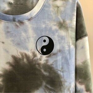 REBELLIOUS ONE JUNIORS' SWEATSHIRT GRAPHIC YIN YANG AT THE FRONT, SIZE L, RIBBED AT NECKLINE, CUFFS AND HEM