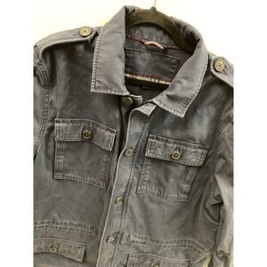 VTG Y2K Utility Jacket Large Tommy Hillfiger Navy Button & Drawstring MILITARY