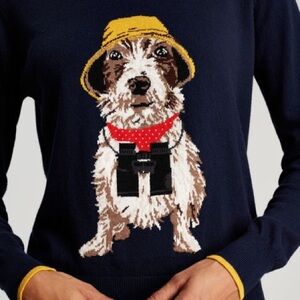 Joules Jack Russel Parson Terrier Dog Ladies Knit Sweater size 10 Navy Blue