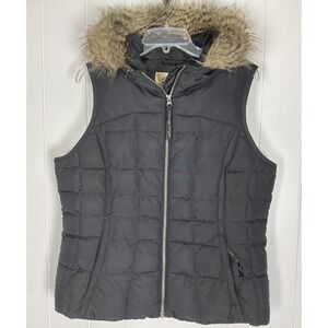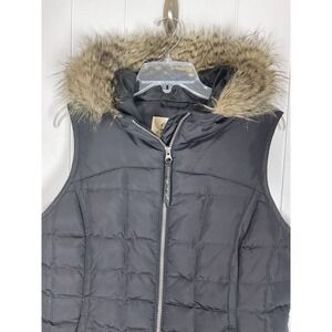 Eddie Bauer Women's Premium Black Down Vest with Fur Lined Hood Size Large