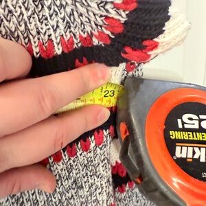 Cozy crewneck with a stylish pattern. Features gray, red, and black design. Ideal for casual wear.