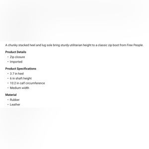 A chunky stacked heel and lug sole bring sturdy utilitarian height to a classic zip boot from Free People.