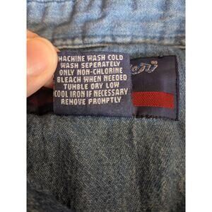 Embrace a blend of retro style and comfort with this vintage Wrangler polo, a perfect addition to any casual wardrobe. Rendered in a vivid blue that captures the essence of the 1980s, this shirt features a classic button-front design and comfortable long sleeves. The authentic piece is crafted from pure cotton, ensuring breathability and ease of care.