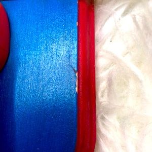 Handmade dog leash holder with cute doggy bottom! Blue wooden plaque with red letters walk. Measures five inches wide by seven inches long.