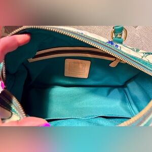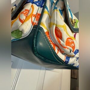 Coach Limited Edition Teal Multicolor Scribble Stitch Pocket Satchel 1847
