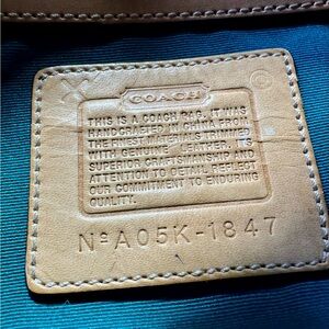 This bag originally came with a brass hang tag, which was not on this bag when I purchased it. I added a brass Coach hang tag that is slightly different than the original and has some wear, but looks very close to the original.