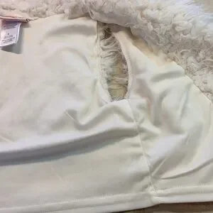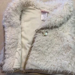Polyester in creamy white. Sheep wool look. No flaws.