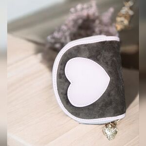 Includes classic scottie dog half moon wallet in chocolate with pink piping!