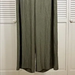 NWT J. Crew Olive Wide Leg Stratus Pant in Textured Satin XL
