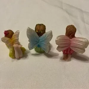 Whimsical Set of Three Miniature Fairy Figurines Whimsy Decor Fairy Garden Vtg