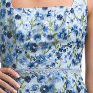 embroidered floral design, partially lined, lace waistband, illusion hem