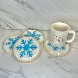 Snowflake Sugar Cookie Coasters - Handmade – Set of 4