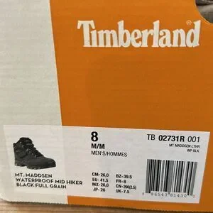 Timberland Men's Mt. Maddsen Mid Waterproof Hiking Boot Black NEW in Box