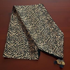 Fabric table runner zebra like pattern tassels black gold texture of velvet