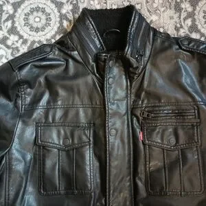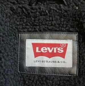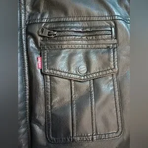 Levis Mens Faux Leather Aviator Jacket XL Black Sherpa Lined Moto Trucker Biker