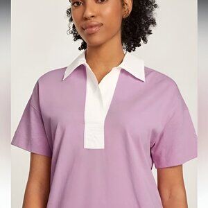 everlane dress, polo dress, tenniscore, preppy style, quiet luxury, organic cotton, minimalist dress, capsule wardrobe, pink dress, contrast collar, rugby collar, short sleeve dress, summer dress, spring outfit, casual weekend, brunch outfit, office casual, travel dress, resort wear, breathable cotton, sustainable fashion, simple modern, timeless basics, women xs, above knee dress, easy pullover