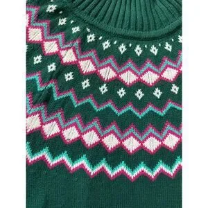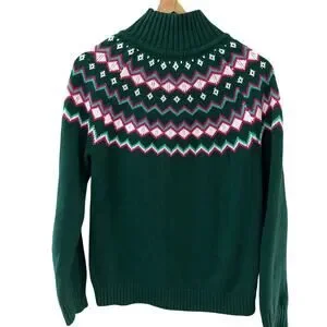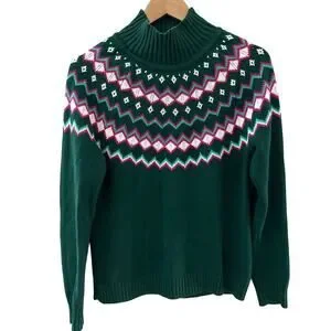 J. Crew Fair Isle Turtle Neck Sweater Green Berry Size Small